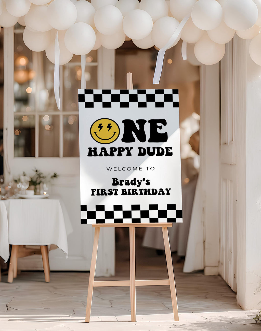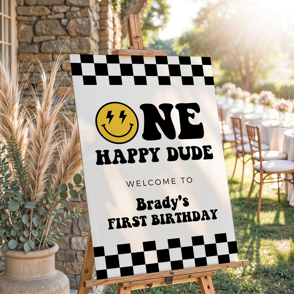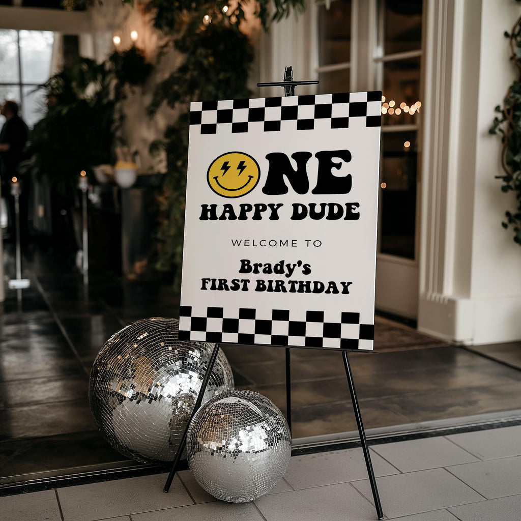 One Happy Dude Birthday Welcome Sign | Baby Boy First Birthday S4