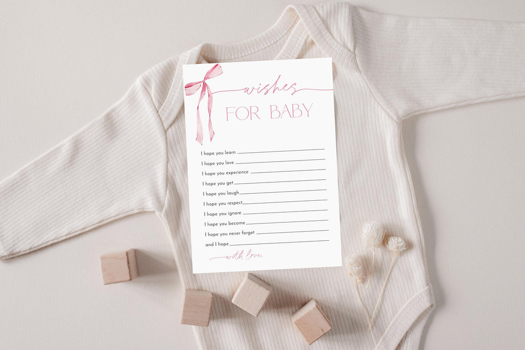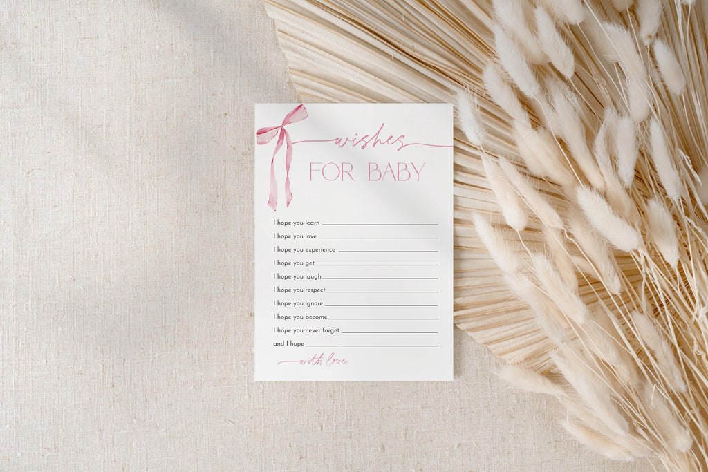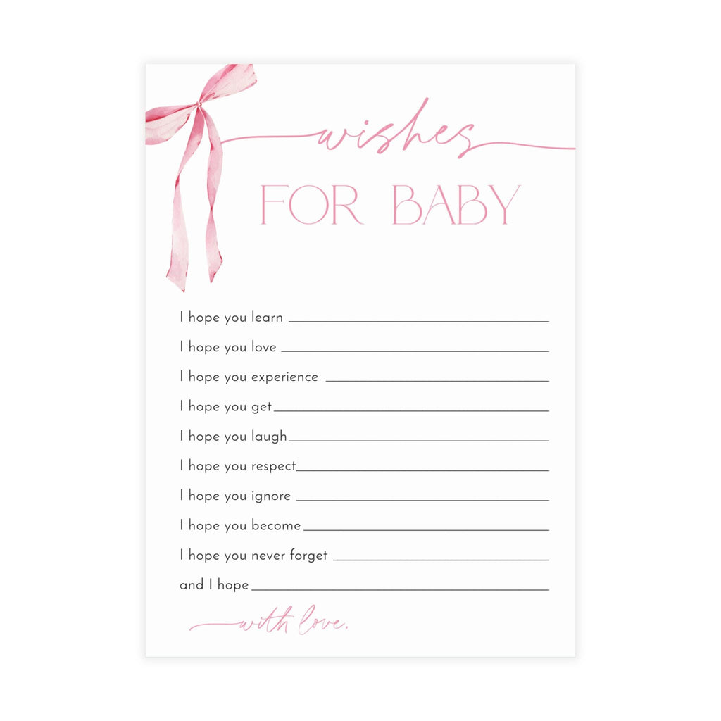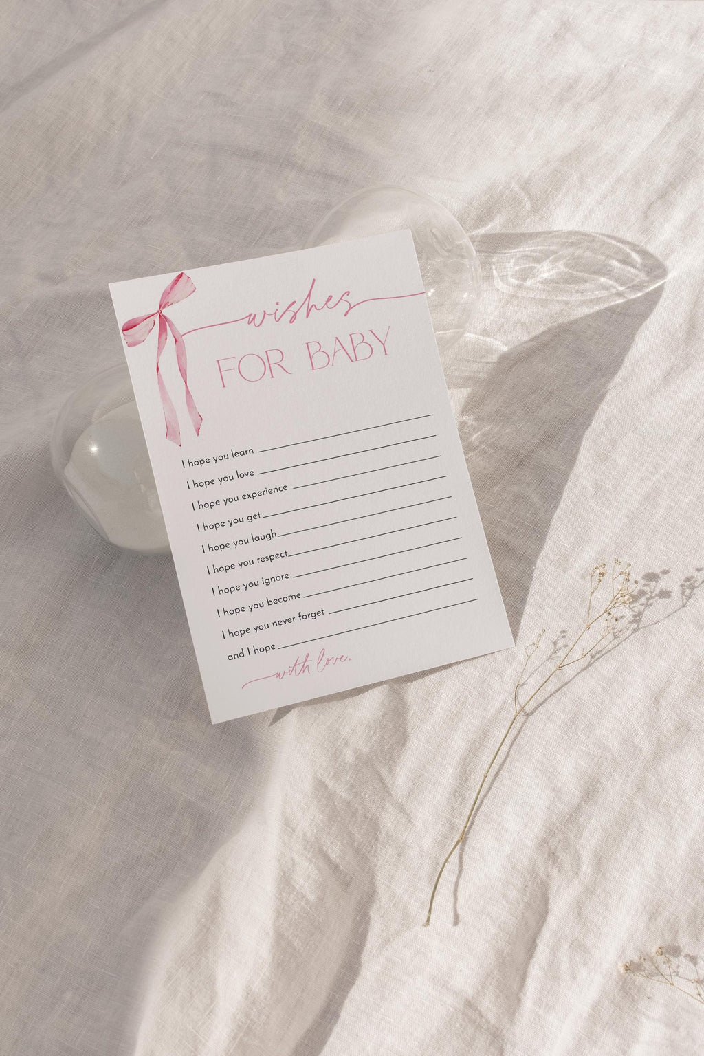 Wishes for Baby Card Baby Shower Card | Pink Bow